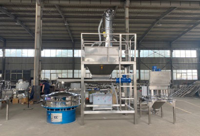 This integrated powder handling and processing line is designed for industries requiring high cleanliness, accuracy, and efficiency.