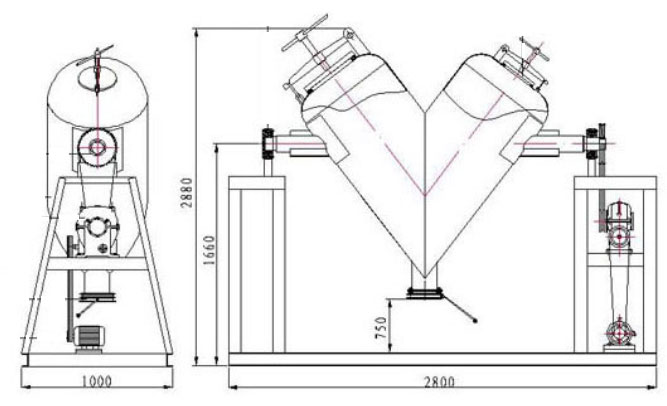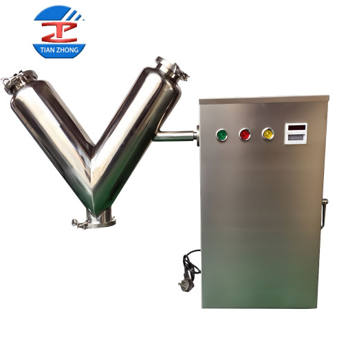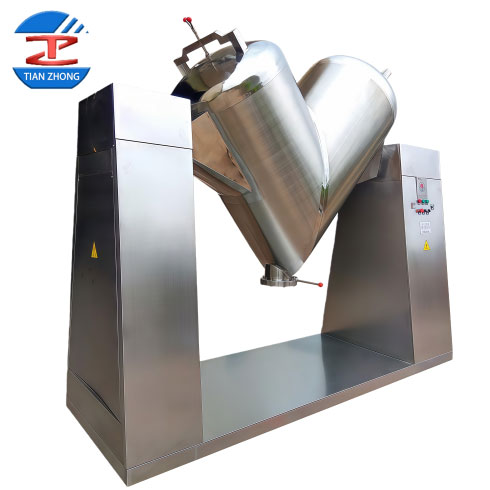 The V-type Mixer is a device that achieves efficient mixing by utilizing a rotating drum to create internal material separation. Its mixing chamber is formed by welding two asymmetrical cylinders into a V-shape. During rotation, materials undergo repeated division, merging, and diffusion, enabling rapid, gentle, and uniform blending. It is particularly suitable for mixing free-flowing powdered and granular materials, as well as materials with significantly differing specific gravities.